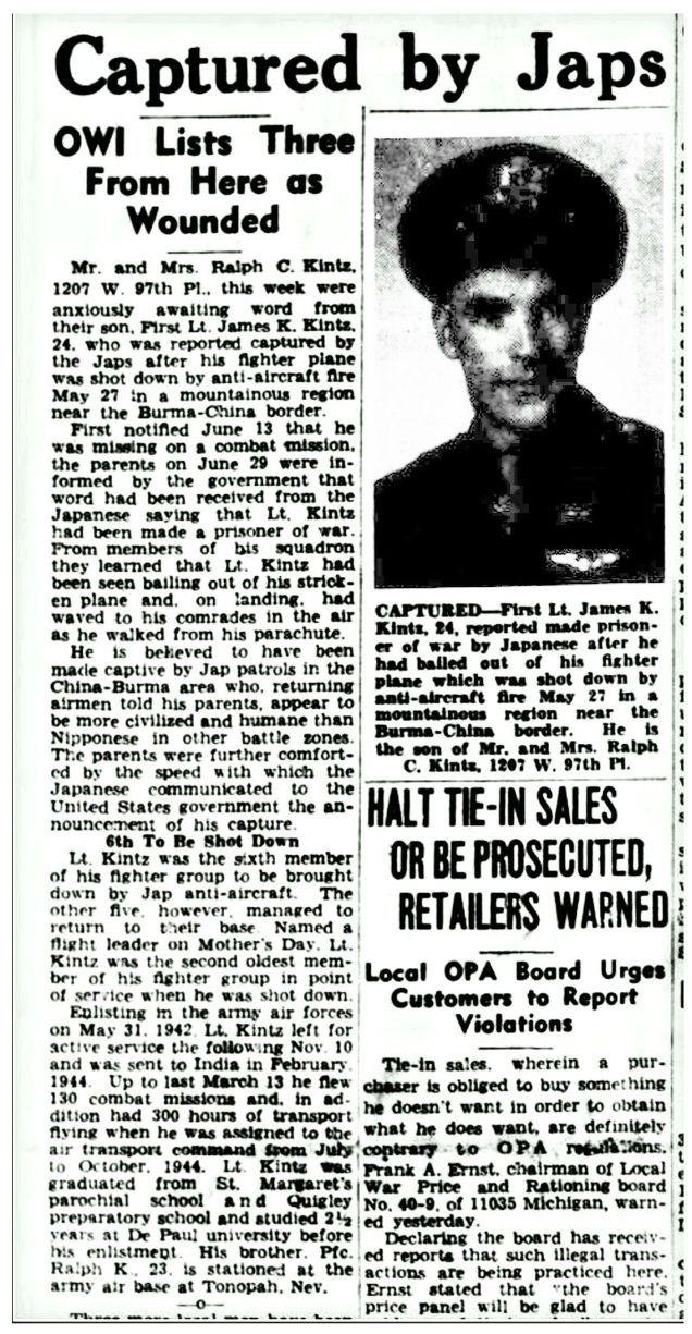 Newspapers first reported on Kintz on 18 Jul 1945:13