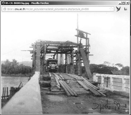 - “Chiengrai bridge was bombed”: Sitrep 10AF, 12 Dec 44 (USAF Archive Microfilm Reel A8044 p 0344). The result photographed in 1948: