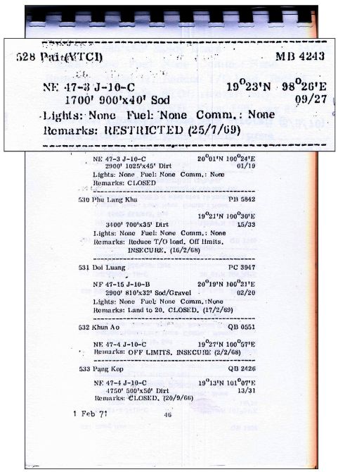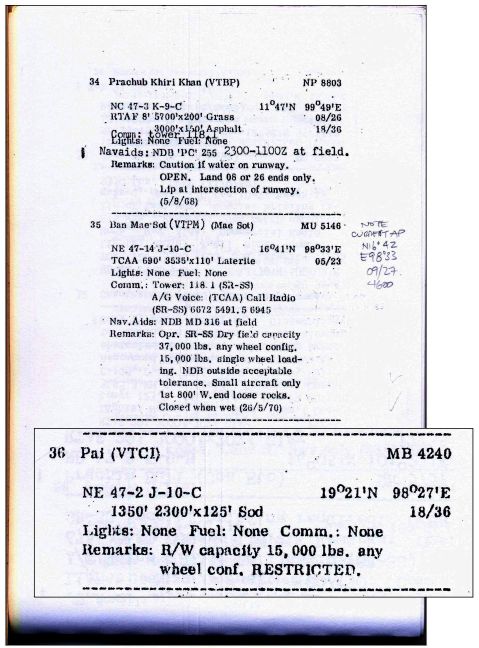 February 1971: An Air America listing of facilities in Thailand includes two airstrips at Pai.13