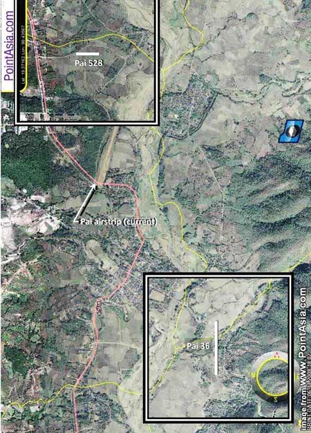 The map above1 shows the approximate location of the current day runway2 at Pai3. No evidence has been found that air facilities existed at Pai during WWII.