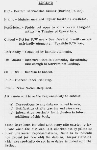 - Air Facilities Data Thailand 432 (?: Air America?, 1971), pp 17 & 46; my refs: \02313 1095 100 Pai airport\Items for website\AA 036 Pai-25.jpg, . . . AA 528 Pai-25. “Legend” for AA listings: Air America, p 1; my ref: 03400 Air America TH Data\AA01 Key-a.jpg: