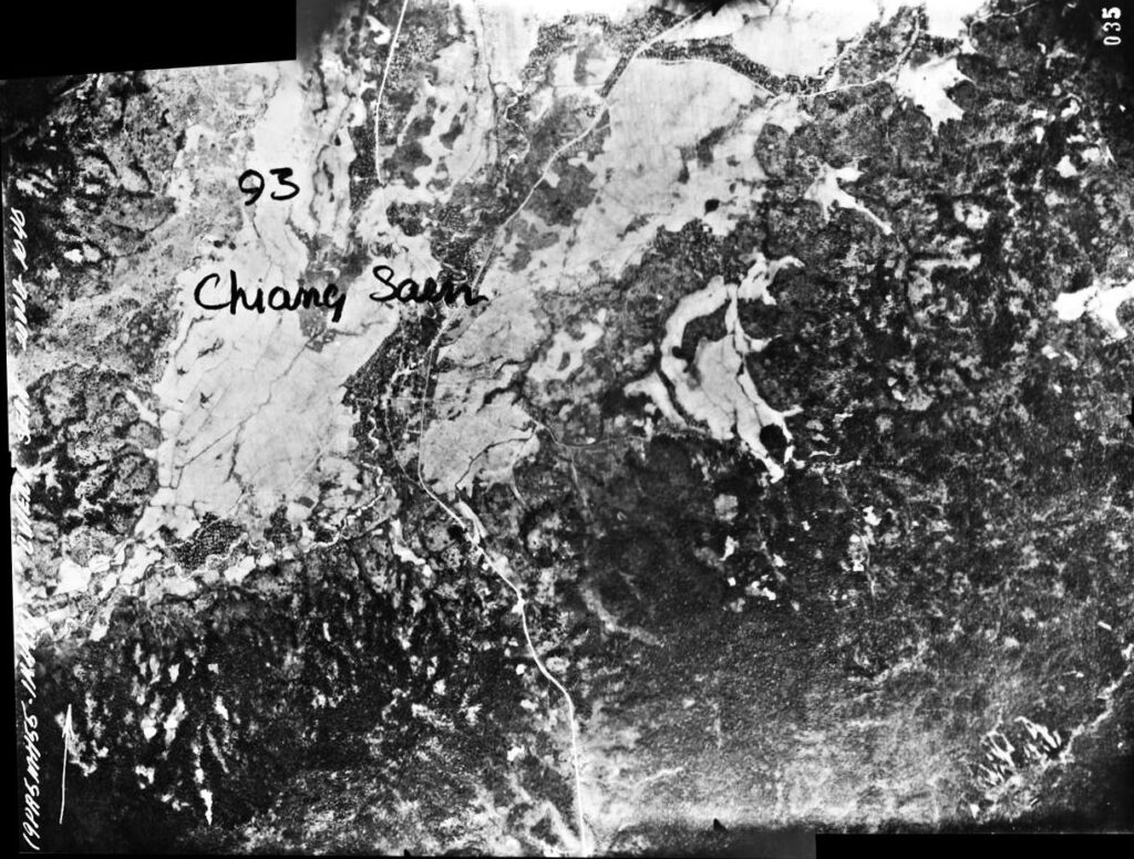 The area around Mae Chan outlined above in red was recorded in seven RAF aerial photos taken on 05 October 1944:4