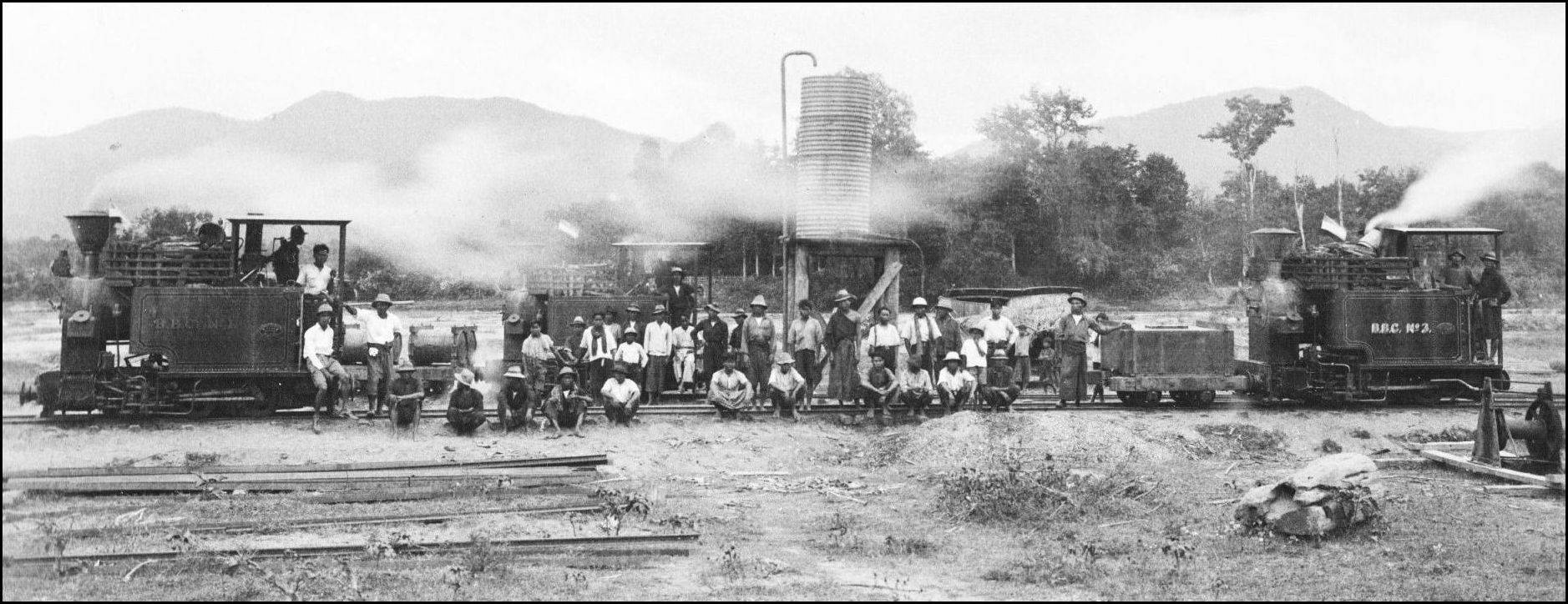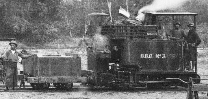 - Photo from Oliver Backhouse private collection. Photo is also reproduced in Boonserm, p 50, but incorrectly identified there as a Borneo Co facility. The error becomes apparent when the initials on the locomotive on the right are seen to be BBC, ie, Bombay-Burmah Company: BBTC loco no 3