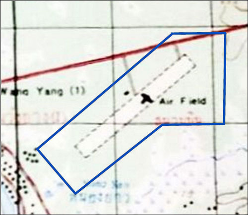 At this time, the location of this airstrip is unknown. The map shows a runway adjacent to a road curving northeast towards Uttaradit, while the “Remarks” locate it as 5 km west of Uttaradit. The second runway in 1944 was roughly aligned ENE-WSW while this runway is shown as north-south and it was about two kilometers west of Uttaradit, not the five specified here.